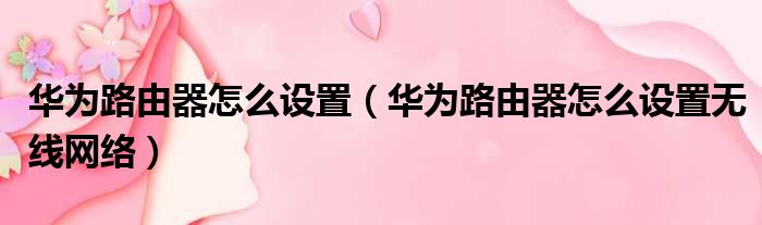 华为路由器怎么设置(华为路由器怎么设置无线网络)