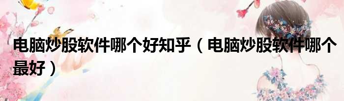 电脑炒股软件哪个好知乎(电脑炒股软件哪个最好)