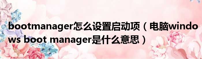 bootmanager怎么设置启动项(电脑windows boot manager是什么意思)
