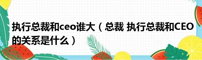 执行总裁和ceo谁大(总裁 执行总裁和CEO的关系是什么)