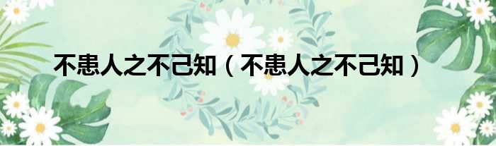 不患人之不己知(不患人之不己知)