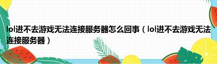 lol进不去游戏无法连接服务器怎么回事(lol进不去游戏无法连接服务器)