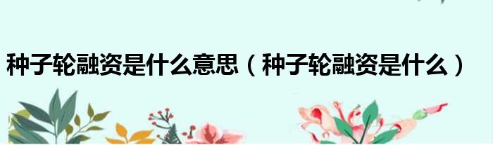 种子轮融资是什么意思(种子轮融资是什么)