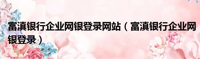 富滇银行企业网银登录网站(富滇银行企业网银登录)