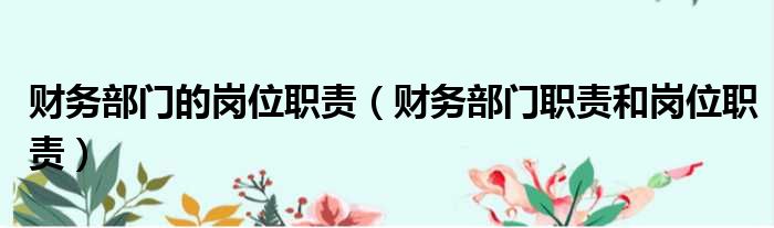 财务部门的岗位职责(财务部门职责和岗位职责)