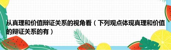 从真理和价值辩证关系的视角看(下列观点体现真理和价值的辩证关系的有)