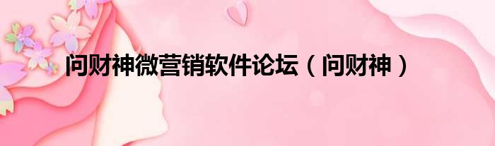 大家好,小东方来为大家解答以上的问题。问财神微营销软件论坛,问财神这个很多人还不知道,现在让我们一起来看看吧!