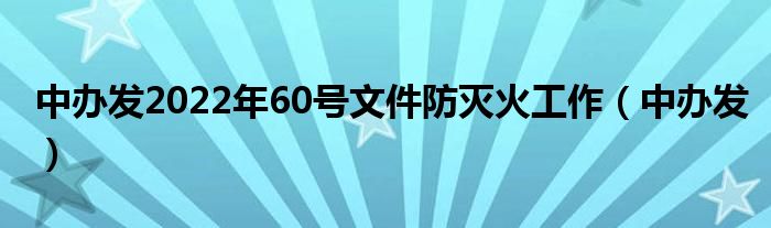 大家好,小东方来为大家解答以上的问题。中办发2022年60号文件防灭火工作,中办发这个很多人还不知道,现在让我们一起来看看吧!