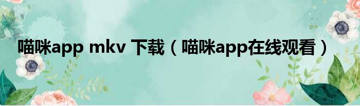 大家好,小东方来为大家解答以上的问题。喵咪app mkv 下载,喵咪app在线观看这个很多人还不知道,现在让我们一起来看看吧!