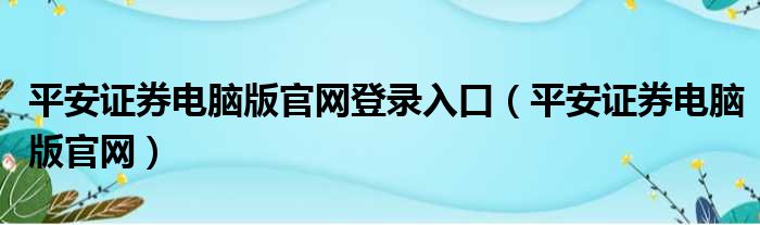 平安证券电脑版官网登录入口(平安证券电脑版官网)