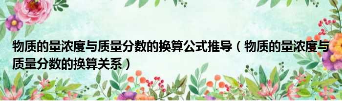 物质的量浓度与质量分数的换算公式推导(物质的量浓度与质量分数的换算关系)