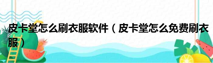 皮卡堂怎么刷衣服软件(皮卡堂怎么免费刷衣服)