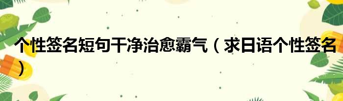 大家好,小东方来为大家解答以上的问题。个性签名短句干净治愈霸气,求日语个性签名这个很多人还不知道,现在让我们一起来看看吧!