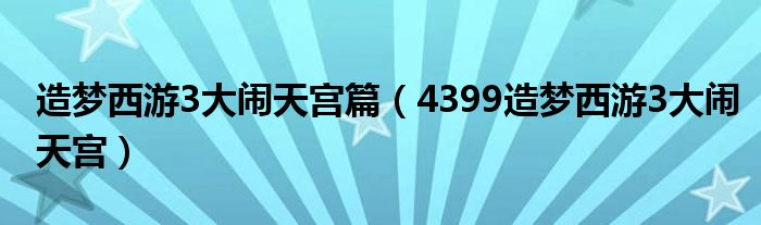 造梦西游3大闹天宫篇(4399造梦西游3大闹天宫)