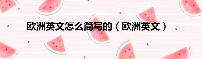 大家好,小东方来为大家解答以上的问题。欧洲英文怎么简写的,欧洲英文这个很多人还不知道,现在让我们一起来看看吧!