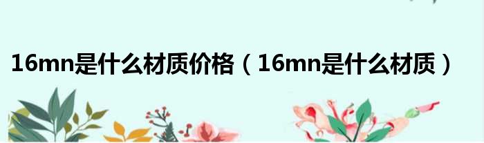 大家好,小东方来为大家解答以上的问题。16mn是什么材质价格,16mn是什么材质这个很多人还不知道,现在让我们一起来看看吧!