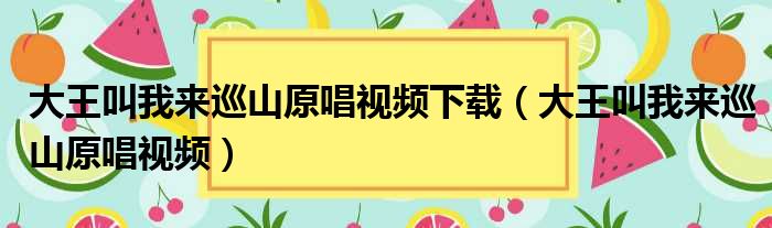 大王叫我来巡山原唱视频下载(大王叫我来巡山原唱视频)