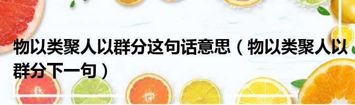 物以类聚人以群分这句话意思(物以类聚人以群分下一句)