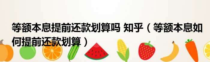 等额本息提前还款划算吗 知乎(等额本息如何提前还款划算)