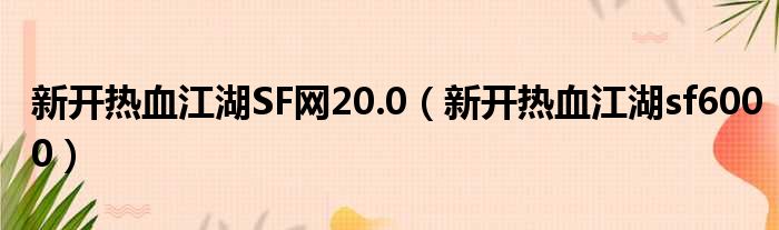 新开热血江湖SF网20.0(新开热血江湖sf6000)