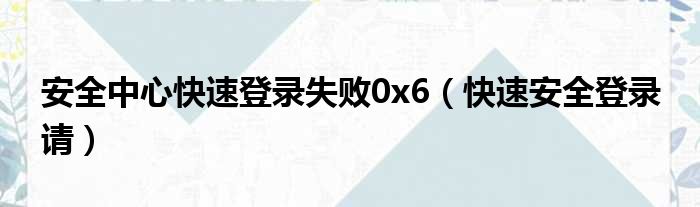 大家好,小东方来为大家解答以上的问题。安全中心快速登录失败0x6,快速安全登录 请这个很多人还不知道,现在让我们一起来看看吧!