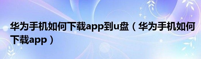 华为手机如何下载app到u盘(华为手机如何下载app)