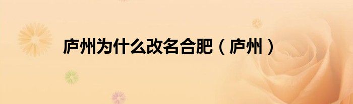 庐州为什么改名合肥(庐州)