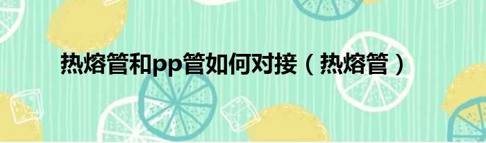 热熔管和pp管如何对接(热熔管)