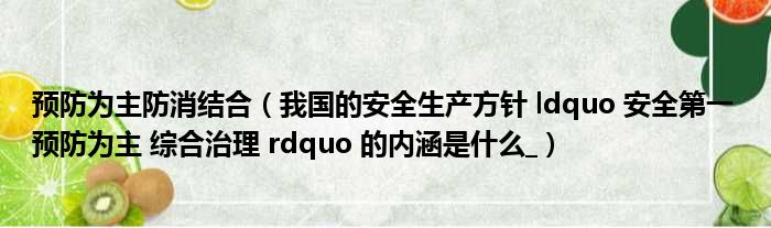 预防为主防消结合(我国的安全生产方针 ldquo 安全第一 预防为主 综合治理 rdquo 的内涵是什么_)