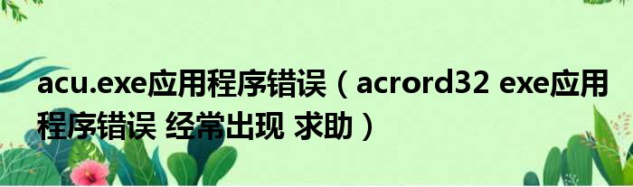 acu.exe应用程序错误(acrord32 exe应用程序错误 经常出现 求助)
