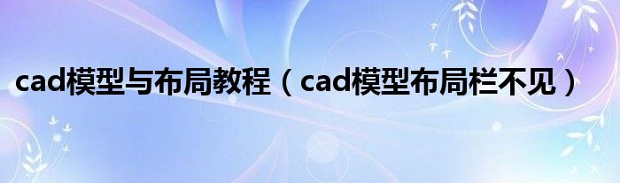 大家好,小东方来为大家解答以上的问题。cad模型与布局教程,cad模型布局栏不见这个很多人还不知道,现在让我们一起来看看吧!