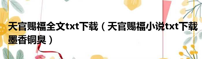 大家好,小东方来为大家解答以上的问题。天官赐福全文txt下载,天官赐福小说txt下载墨香铜臭这个很多人还不知道,现在让我们一起来看看吧!