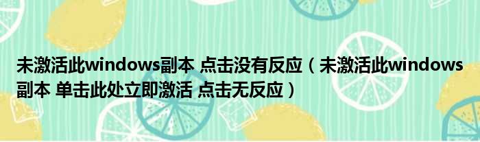 未激活此windows副本 点击没有反应(未激活此windows副本 单击此处立即激活 点击无反应)