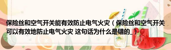 保险丝和空气开关能有效防止电气火灾(保险丝和空气开关可以有效地防止电气火灾 这句话为什么是错的_)
