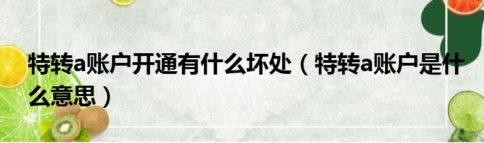 特转a账户开通有什么坏处(特转a账户是什么意思)
