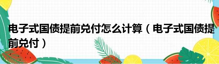 电子式国债提前兑付怎么计算(电子式国债提前兑付)