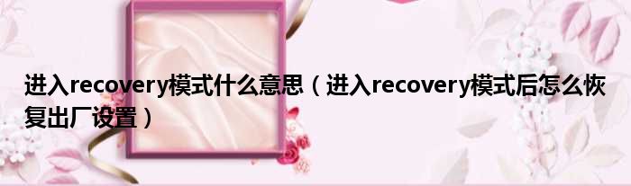 进入recovery模式什么意思(进入recovery模式后怎么恢复出厂设置)