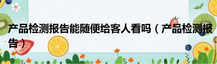 大家好,小东方来为大家解答以上的问题。产品检测报告能随便给客人看吗,产品检测报告这个很多人还不知道,现在让我们一起来看看吧!
