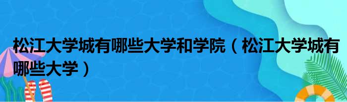 松江大学城有哪些大学和学院(松江大学城有哪些大学)