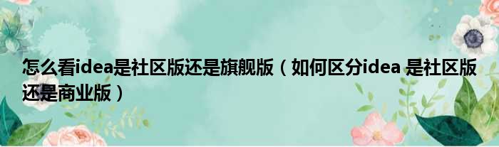 怎么看idea是社区版还是旗舰版(如何区分idea 是社区版还是商业版)