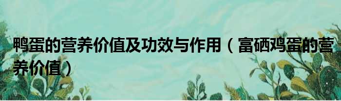 鸭蛋的营养价值及功效与作用(富硒鸡蛋的营养价值)