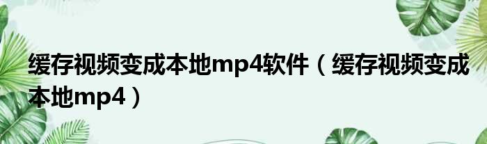 缓存视频变成本地mp4软件(缓存视频变成本地mp4)