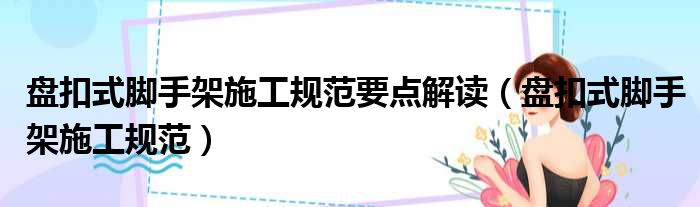 盘扣式脚手架施工规范要点解读(盘扣式脚手架施工规范)