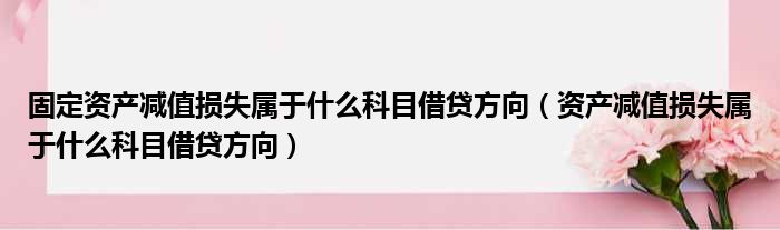 固定资产减值损失属于什么科目借贷方向(资产减值损失属于什么科目借贷方向)