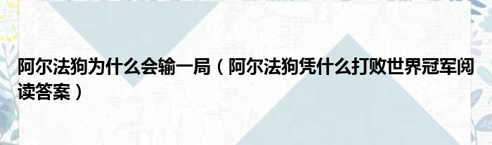 阿尔法狗为什么会输一局(阿尔法狗凭什么打败世界冠军阅读答案)