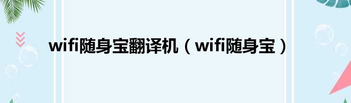 wifi随身宝翻译机(wifi随身宝)