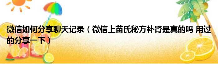微信如何分享聊天记录(微信上苗氏秘方补肾是真的吗 用过的分享一下)