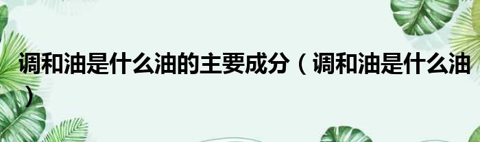 大家好,小东方来为大家解答以上的问题。调和油是什么油的主要成分,调和油是什么油这个很多人还不知道,现在让我们一起来看看吧!