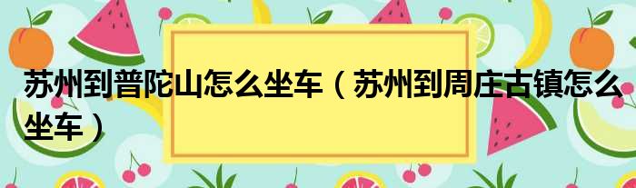 苏州到普陀山怎么坐车(苏州到周庄古镇怎么坐车)