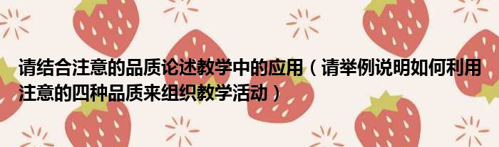 请结合注意的品质论述教学中的应用(请举例说明如何利用注意的四种品质来组织教学活动)